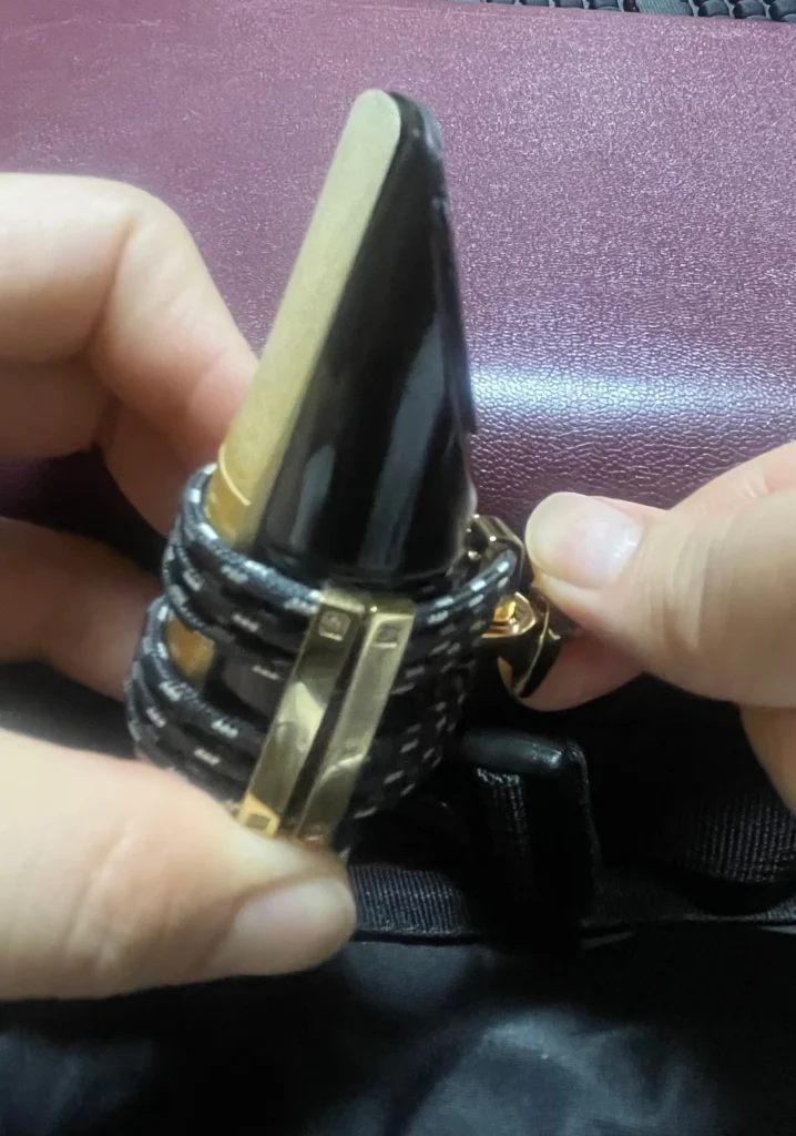 まずはリードを取り付ける前に、マウスピースにリガチャーを装着します。