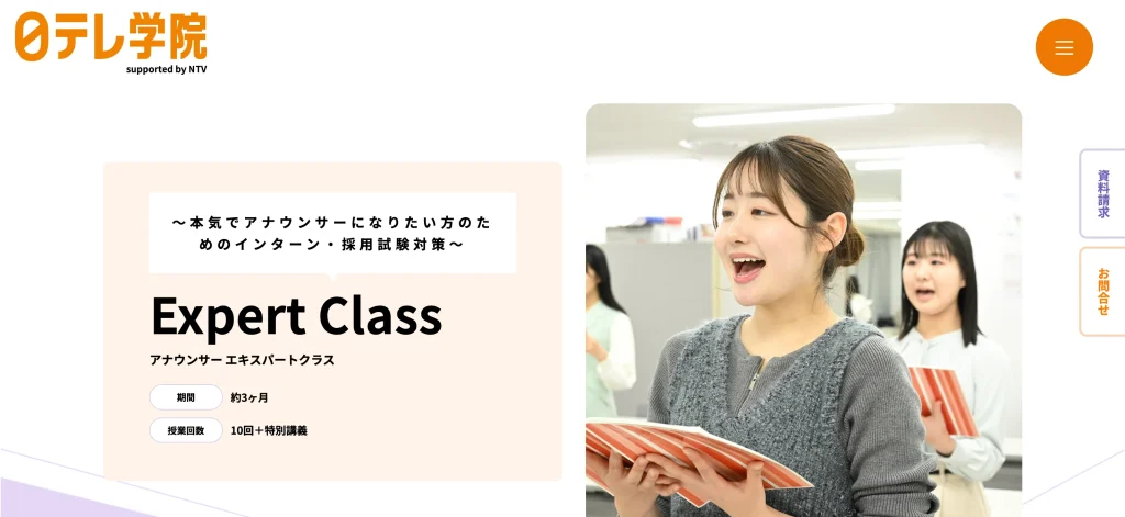 | 日テレ学院 | なし | 125,000円(5回) | 話し方スキルアップ | 一部 | 1校(東京) | 見学可 | |