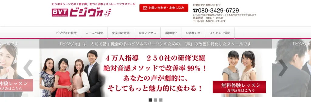 - ビジネス特化コースが豊富 → Beeボイススクール(プレゼン、あがり症など)