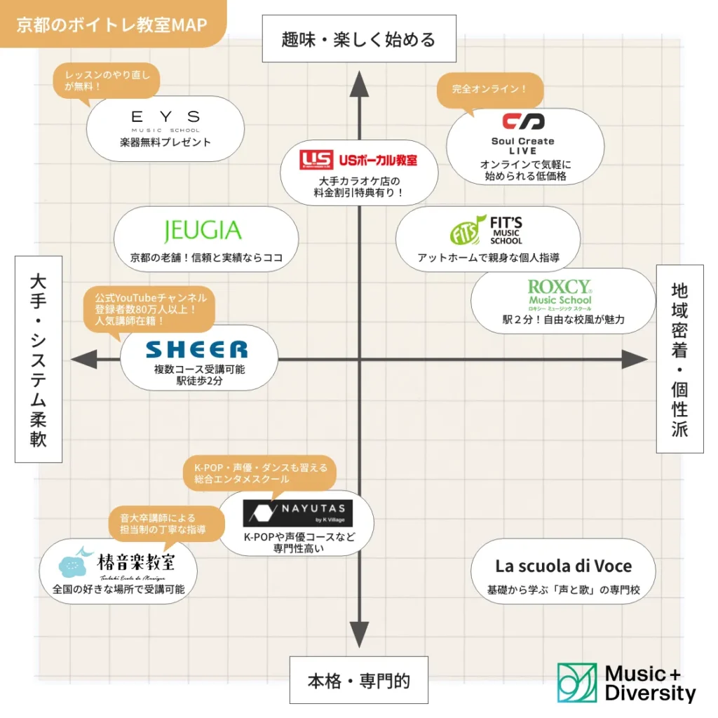 京都には数多くのボイトレ教室がありますが、実は「教室ごとの得意分野」は全く異なります。