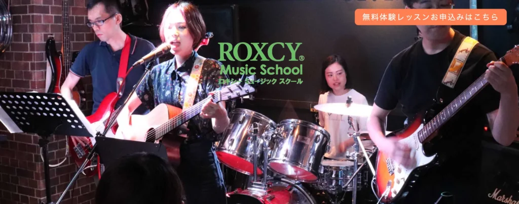 ギターやドラムなどバンド系楽器のコースも充実しており、スクール主催のライブイベントも盛り上がりを見せています。