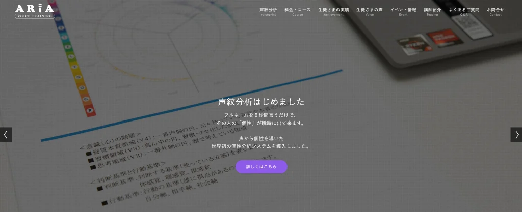 | コース | マンツーマンレッスン ペアレッスン 単発レッスン オンラインレッスン 声紋分析 |