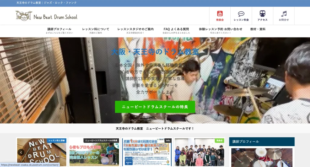 ニュービートドラムスクールは、大阪の天王寺駅近くにあるドラム教室です。
