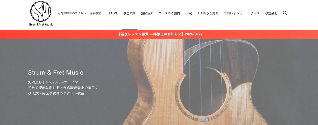 Strum & Fret Music | 個人・少人数G | 3,300円 (無料CPあり) | 1回 5,500円〜 | 河内長野市 | 有料 | ・プロ奏者が主宰 ・月1回から受講OK |