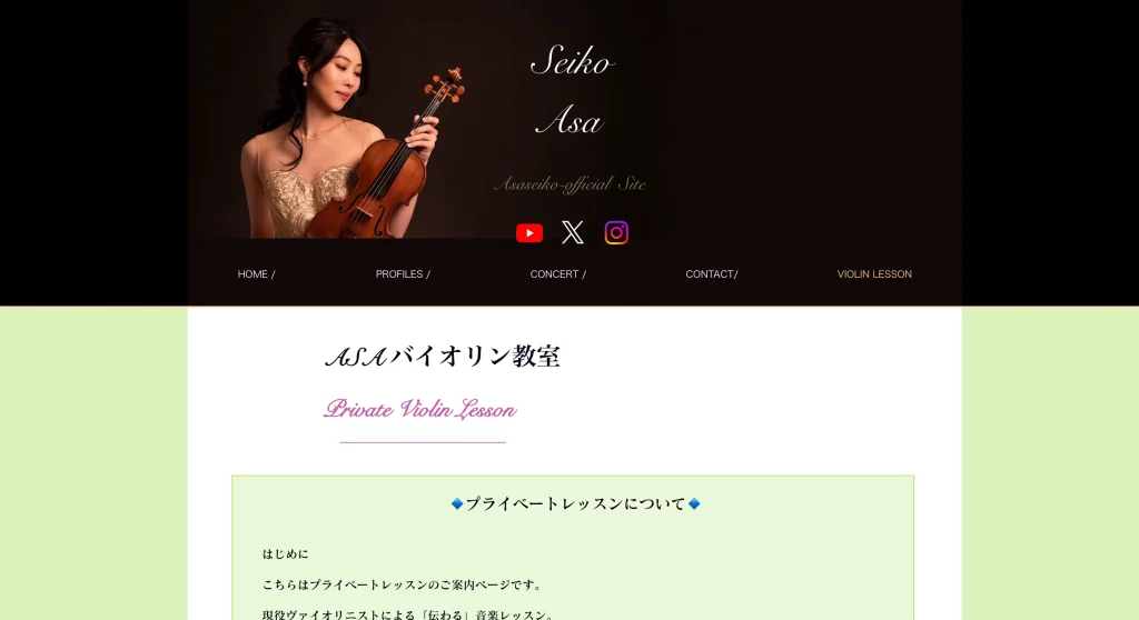最大の特徴は、国内外で活動する現役ヴァイオリニスト(阿佐聖姫子氏)から直接指導を受けられる点です。