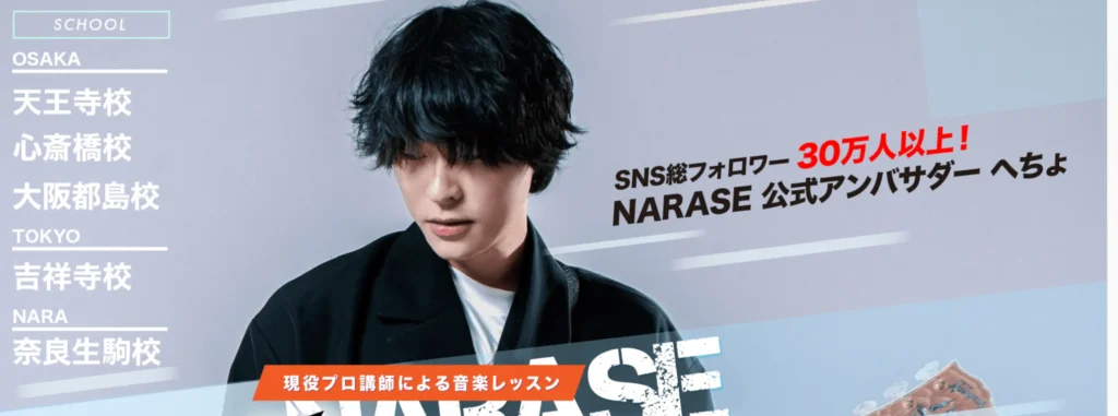 NARASE MUSIC ACADEMYは現役プロ講師によるレッスンが受けられる音楽スクールで、2026年1月10日に天王寺校がグランドオープンしました。