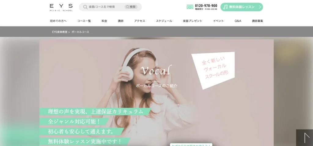 | 主なコース | 初心者ボーカル、カラオケ、音痴克服、バンドボーカル、プロ志望、弾き語り、ボイスなど |
