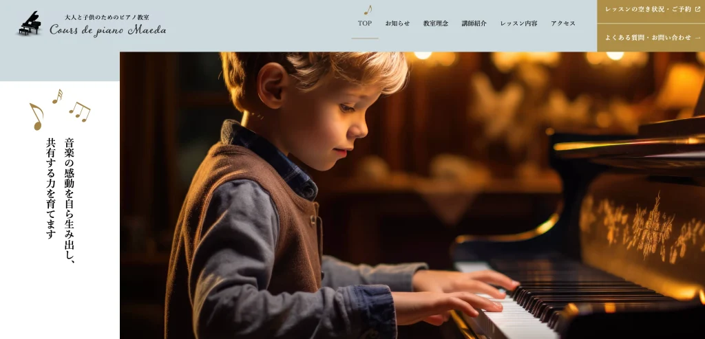 2. Cours de piano Maeda パリ留学9年、エコールノルマル音楽院ディプロム取得の講師による、国際的な視点からの指導が受けられます。門下生のコンクール全国大会金賞受賞実績も豊富で、発想力・想像力を重視した音楽的表現力を育てられます。